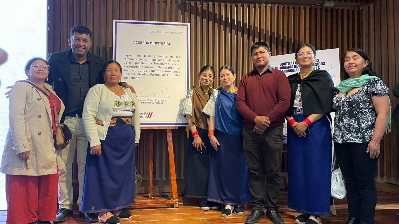 El acto de firma contó con la presencia de autoridades nacionales y representantes de CONAGOPARE Imbabura, quienes destacaron la importancia de avanzar en políticas que fortalezcan a los gobiernos rurales y promuevan mejores condiciones laborales para quienes sostienen la gestión administrativa en los territorios.
